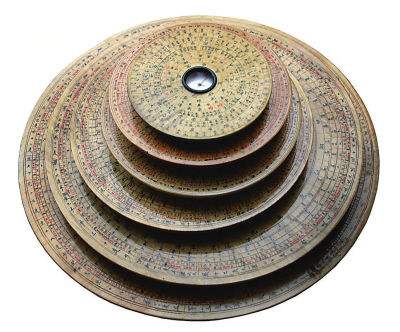 风水罗盘学名为罗经,创自轩辕黄帝时代,后经过历代前贤,按易经及河洛原理,参以日月五星七政及天象星宿运行原则,再察地球上山川河流,平原波浪起伏形态,加以修正改良制造而成,用于测定方位和勘察地形,堪舆地师及海员大都称它为“罗盘”或“罗庚”,很少称为“罗经”。风水师则通过磁针的转动,寻找最适合特定人或特定事的方位或时间。
